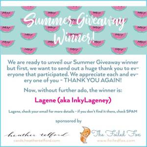 I am excited to have new cards to share and a WINNER to announce. I teamed up with the Foiled Fox to host a giveaway just two short weeks ago and I’m very happy to announce that Lagene is the randomly chosen winner of the $25 gift voucher to spend at the delightful Foiled Fox online store.