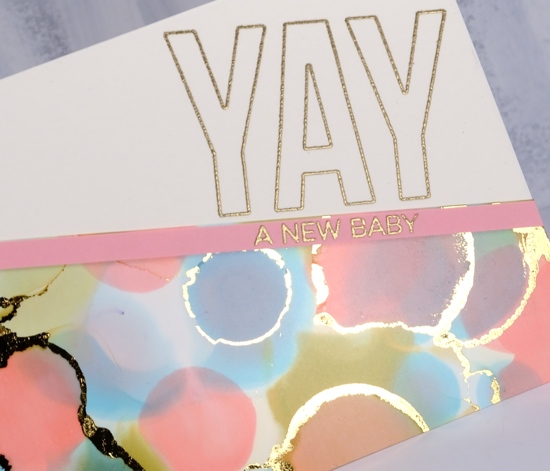 The ‘Yay for you’ set from My Favorite Things gave me all sorts of options for sentiments; I settled on a baby card and an achievement/congratulations card. You can read my step by step instructions over at the Foiled Fox.