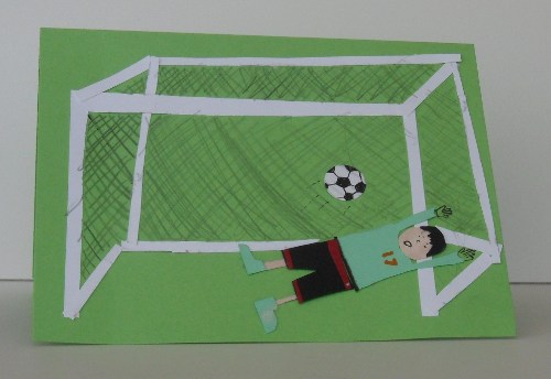 The card my son made was quite impressive as he cut all his shapes out and created a soccer scene.