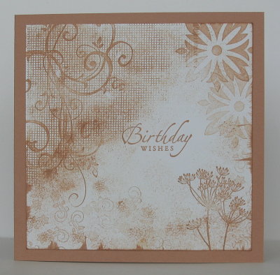 My younger daughter likes a bit of sparkle. Once again it was a bit hard to photograph but she embossed the butterfly from Garden Whimsy with iridescent ice and then sponged around it.