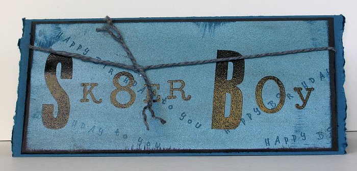 So this year, true to form the night before the birthday arrives, I am about to go to bed and I realise, no card! I cannot use By Land again, and besides one of my daughters used it for her card. (below) My solution was to make a scruffy skate theme card for my skateboarding eight year old. It came together surprisingly quickly and I popped it in with the gift. The next day he started opening his presents, reading every card before opening and examining every gift. It was only when he came to the one from my husband and I that I realised that the card was there, but I hadn’t written a word in it…