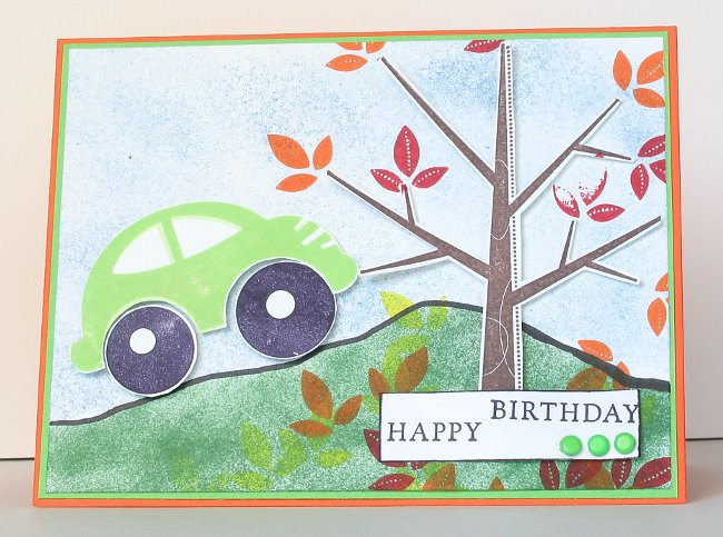 I’m sorry about the lack of cards here but I hope to post the December Stampers’ Club projects soon. While I am getting that done I wanted to show you this very clever little card my daughter made for her brother’s birthday. It is all paper piecing except for the wire spokes on the wheels. I was very impressed with the attention to detail.