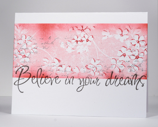 After creating a one layer card with the background stamp Glory of Modesty or GOM for short, I decided to use the same technique and let you in on one step I didn’t mention when I explained my process the first time. It is not a complex step at all, simply one which is easier to show than explain with words.