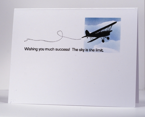 Posted: August 12, 2012 Filed under: Birds on wire, CAS, OLW, Wishing You 21 CommentsI managed to create cards for two challenges this afternoon: the OLW challenge Cheryl set us to use some form of transportation and the Less is More challenge to feature fur or feathers. Let me tell you I was not overflowing with ideas for either challenge. But then I noticed the little airplane stamp in the set I used last week with the fish stamp. Perfect for transportation.