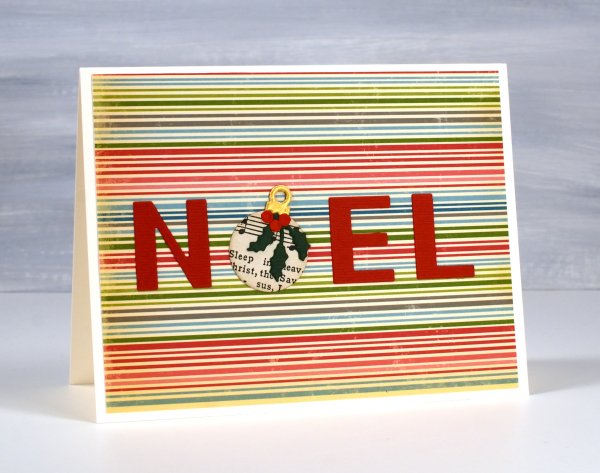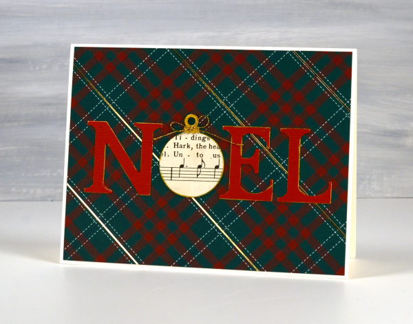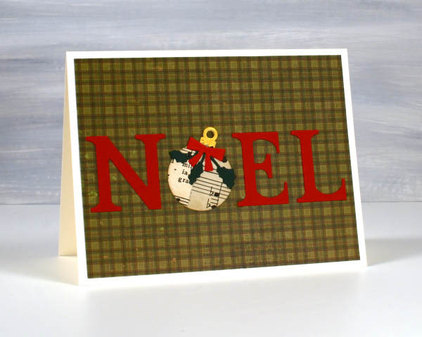 Last week I posted some of my JOY cards where I replaced the ‘O’ with a vintage paper bauble. Not just any vintage paper but Christmas Carol music pages. Well of course I did the same with the ‘O’ in NOEL, how could I not?