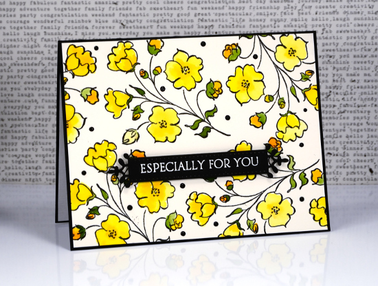 Posted: April 18, 2017 | Author: Heather | Filed under: birds and banners, flower medley | Tags: Nuvo crystal drops, Peerless Transparent Watercolors, Penny Black creative dies, Penny Black stamps, Tsukineko Versafine inks, WOW embossing powders | 4 CommentsI’m sharing another card today made with products from the new Penny Black release ‘Celebrate.’ The flowers featured on today’s card were made with just one of the stamps from the new transparent set ‘flower medley’. I stamped it all over a piece of watercolour paper with black versafine ink then embossed in clear powder. I used my peerless watercolours to fill in all the flowers, buds and leaves.
