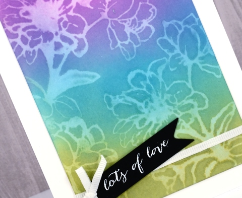 For the these three cards I sponged three colours onto the paper and overlapped them to get nice soft blended colours. The sponging doesn’t take long, it doesn’t leave marks shaped like the edge of your applicator and it creates intense colour.