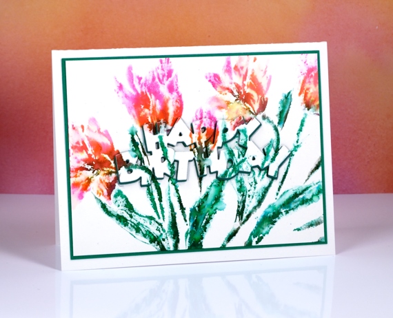 Apparently spring has sprung in some places! I don’t expect to see tulips for a couple more months but that didn’t stop me from using the new ‘first waltz’ stamp from Penny Black to create my CAS project for the challenge.