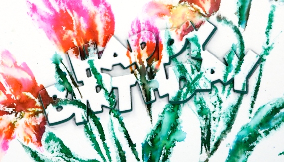 I stamped several panels while testing out the markers. This one, despite it’s brightness, is a second generation impression and the only one so far to be made into a card. The markers are really juicy, the colours are bright and I was able to spritz after stamping three or four times and still get good images. I inked the stamp, ‘first waltz’ in pink orange, green and black, spritzed it, added a few water drops to the watercolour panel, stamped off on another piece of paper then stamped on this panel. (got all that!?) The colours blended enough on the stamp that I didn’t do more blending with a paintbrush.
