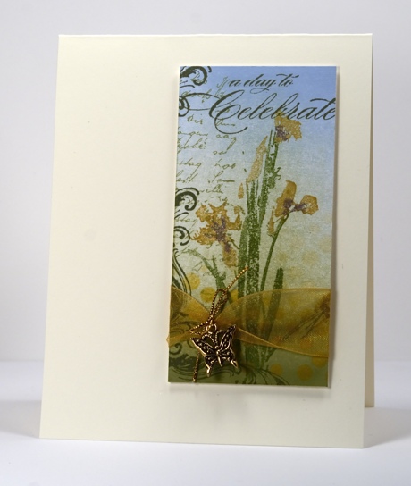 Also: Gold organza ribbon, gold cord, butterfly charm from Lorraine’s stash