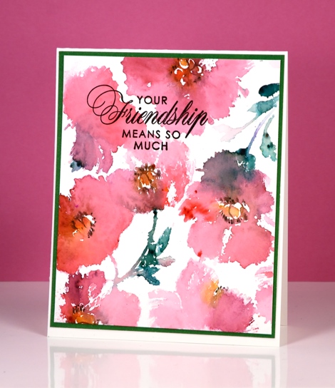 Posted: June 17, 2015 Filed under: CAS, Poppy Pattern | Tags: CAS, Fabriano Watercolour Paper, Penny Black stamps, Ranger Distress stains 8 CommentsJune is my last month as a member of the Dirty Dozen at Splitcoaststampers. I joined the team in January for my six month term. I have really enjoyed being part of the group and have been stretched by the monthly themes. Some of the themes saw me creating cards I would never have chosen to make otherwise which was a great exercise for me. It was also wonderful to see all the projects created by the rest of the ‘Dirty Girls‘. For the June theme I created a friendship card using the ‘poppy pattern’ background stamp. I turned a left over scrap into the card above.