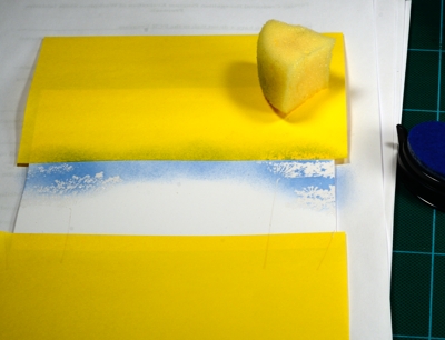 I use round craft sponges cut into quarters to sponge and for this card I used Memento Summer Sky and Danube Blue ink.
