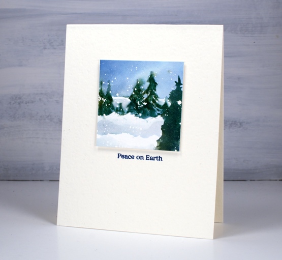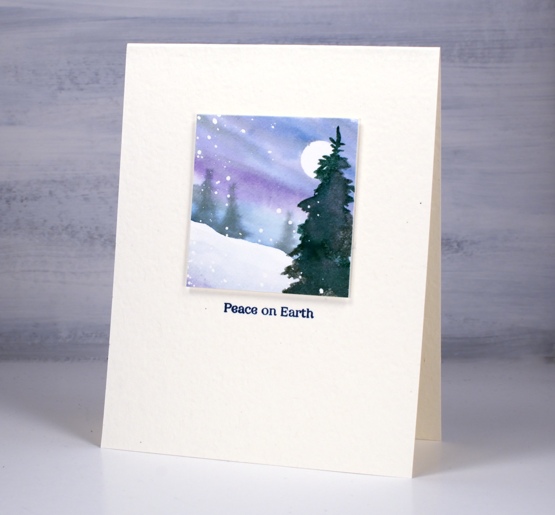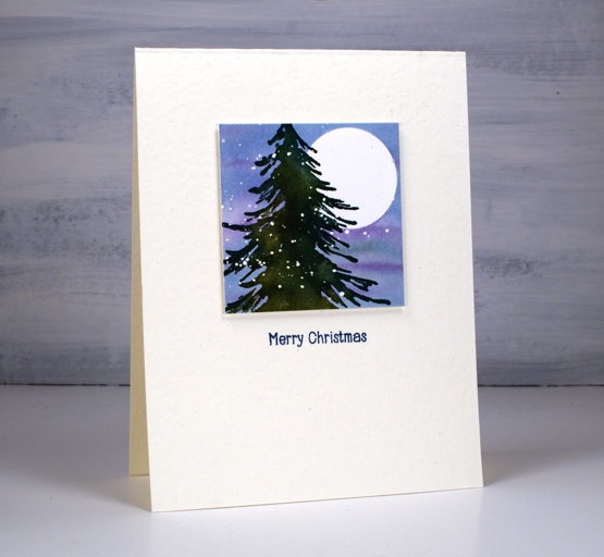 The snowscape above features just a fraction of the PB quietude stamp stamped over a painted ink sky. I painted deep snowbank shadows in front of the small trees and then added a bigger tree from PB nature’s friends set in the foreground.