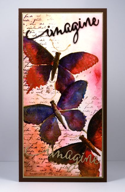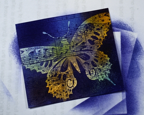 The final step is to sponge over the whole panel in a dark colour and watch the butterfly emerge.