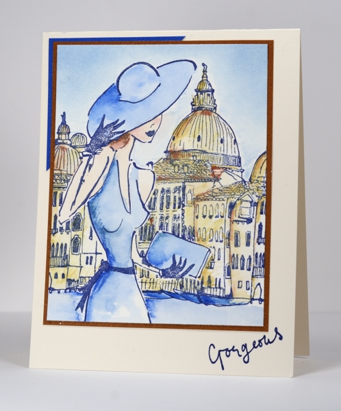 Posted: January 23, 2013 Filed under: CAS, Penny Black, Venetian Summer, Watercolour 15 CommentsI have another new stamp from the Penny Black 2013 Take Flight Catalog today. This whole scene is quite appealing when the weather is white and -26°C (-15°F) outside. A sun hat, a sundress, a walk around Venice sounds rather nice.