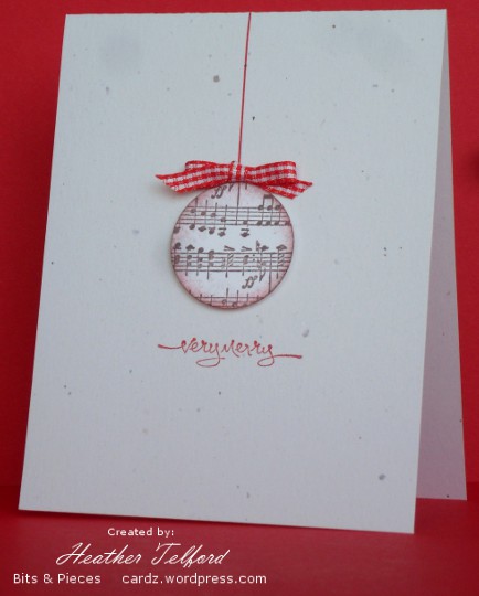 As our family is involved in many musical activities I bought the musical notes roller from SU planning to make many cards with it. I made a few and then seemed to get stuck without inspiration. That is until I saw Susan’s delightful Christmas balls which I reproduced with very minor changes.