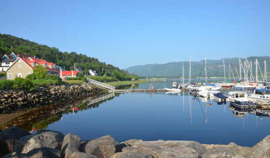 The L’Anse St Jean marina at 8:30 in the morning just before we took a boat tour of the Saguenay Fjord.