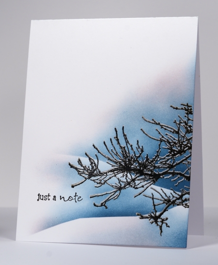 Posted: February 11, 2013 Filed under: CAS, Facebook Friends, Penny Black, Stamped Landscapes 23 CommentsI have another new stamp from the Take Flight catalog to showcase today. This is my kind of stamp as you know, I love silhouettes and I love trees and branches. I fiddled around with the orientation of this stamp for a while before settling on the branches pointing up. You could just as easily point them down or sideways.