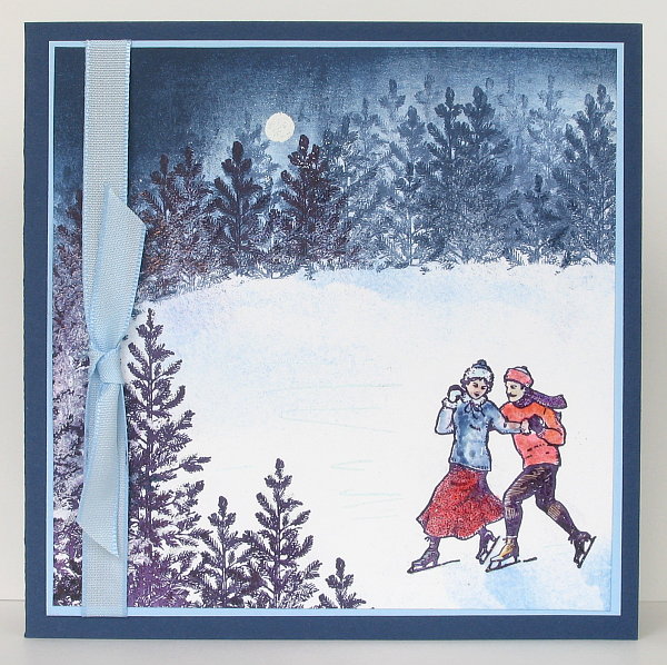 Posted: November 12, 2008 Filed under: Lovely as a Tree, Stamped Landscapes, WInter Post 3 CommentsMy inspiration for this card was a similar card my daughter and a friend of hers designed. When I bought the Winter Post set, I wasn’t sure what to do with the skaters but their idea of a tree lined skating rink definitely appealed to me. I wonder how long before it begins to look like this outside?