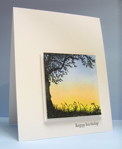 Posted: June 24, 2009 Filed under: Branch Out, Lovely as a Tree, Nature Silhouettes, Stamped Landscapes 15 CommentsIn case you hadn’t noticed I like creating scenes with trees! I have combined three different tree stamps from three different sets to make this sunlit woodland scene.