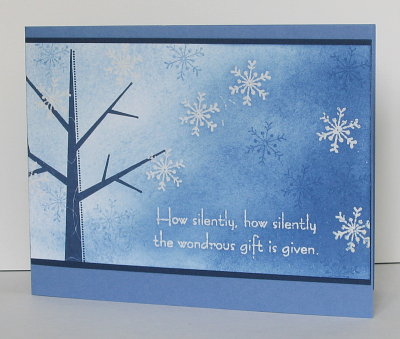 Posted: October 8, 2008 Filed under: Season of Friendship, Stamped Landscapes 10 CommentsI have several Christmas card events to plan for in the coming months so I have been playing with snowflakes stamps again. This tree and the snowflake is from the Season of Friendship set in the Stampin’ Up Holiday Mini. I think the projects featuring different seasons caught my eye more than anything else, but I have been having fun making winter scenes.