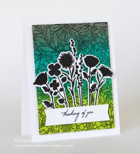 Pam, your bold black, white and green colour scheme caught my eye immediately and your smooth blended background is a gorgeous example of the emboss resist technique.
