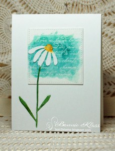 Congratulations, Bonnie, your card is so beautifully balanced and coordinated, with a small perfectly placed embossed panel to frame your white flower.