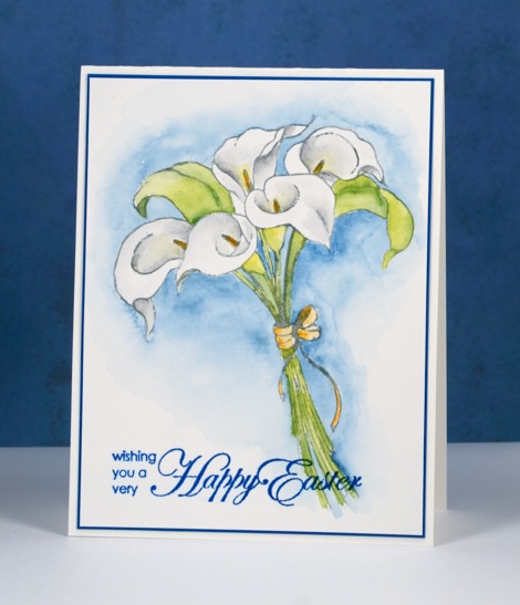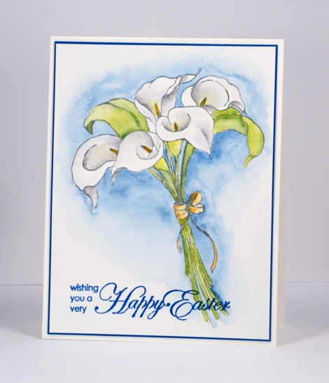 Posted: February 29, 2016 Filed under: CAS, Elegance | Tags: CAS, Faber-Castell Albrecht Durer Watercolour pencils, Fabriano Watercolour Paper, Penny Black stamps, Tsukineko Versafine inks 11 CommentsElegance is the perfect name for this new stamp featuring a bunch of calla lilies. I think I had some in my garden once but apparently you need to dig them up each year and replant them?? That was just not going to happen I’m afraid, no matter how elegant they might be. I have quite a few day lilies that come up year after year and multiply with no attention from me so I have just stuck with them!