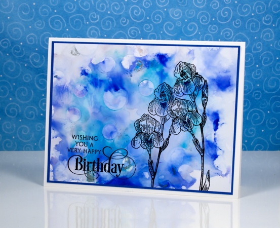 Posted: April 24, 2016 Filed under: Alcohol Ink, CAS, Love Art | Tags: CAS, Penny Black stamps, Ranger Alcohol Ink 13 CommentsI am enjoying teaching a batch of Alcohol Ink classes at present and we have been having so much fun. The depth and impact of alcohol ink colour is quite something. I chose to use these two similar colour panels as background for iris stamps from the Love Art transparent set.