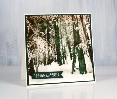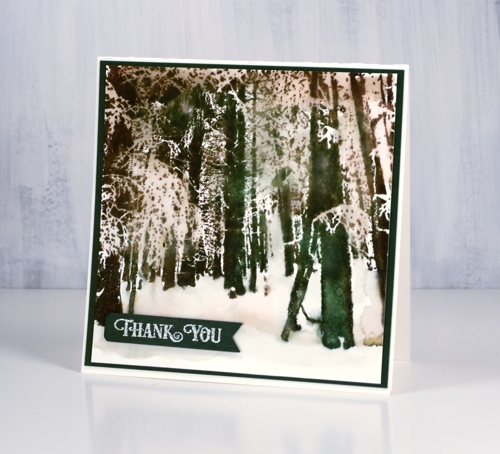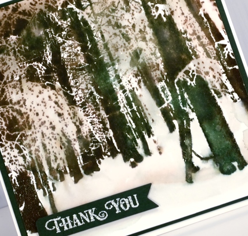 Posted: January 4, 2019 Filed under: A Pocket Full, snow forest | Tags: Catherine Pooler inks, Penny Black creative dies, Penny Black stamps 6 CommentsSnowy scenes and thank you cards will keep on popping up on the blog. This one made with the PB stamp, ‘snow forest’, was very simple to make. I put the stamp in the stamp positioner then inked part of it in Catherine Poolers ‘icing on the cake’ ink, stamped then randomly inked in ‘over coffee’, stamped and finally the same with ‘eucalyptus’ ink. With the whole image stamped I blended the larger distinct tree trunks with water to get the watercolour effect.
