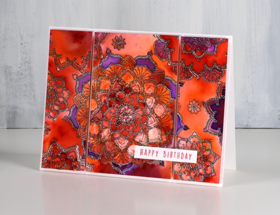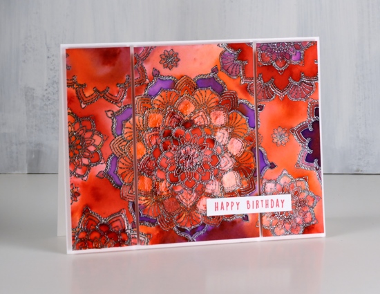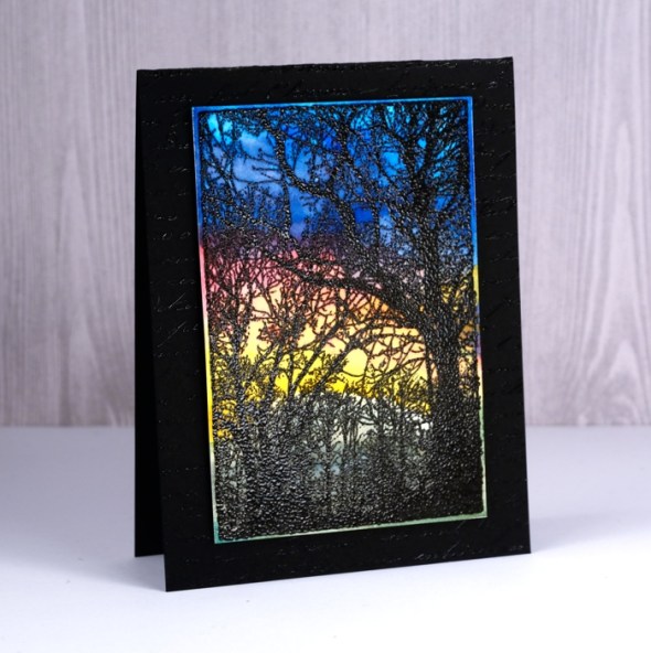 The sunset features the bright hues of colorburst powders over embossing.