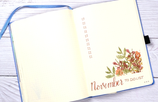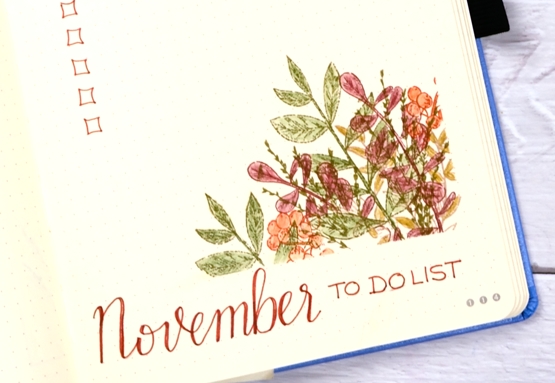And just like that it’s November! I’ve been stamping and painting wreaths for the last few months while creating my new online course so it seemed natural to add one to my bullet journal.