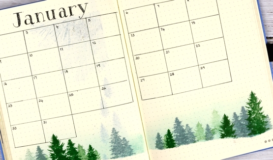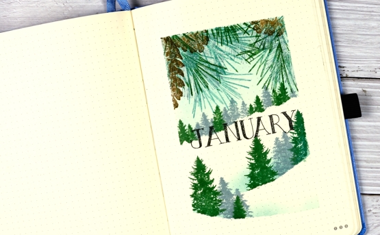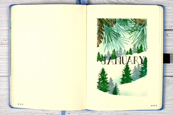 My plan for the new year was to take a different artistic route with my bullet journal themes but here I am with the same mask, stamp, blend approach. I still have fifty pages left in my current journal so I will continue in a similar style for now and make some changes when I switch to a new one.
