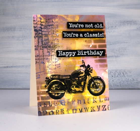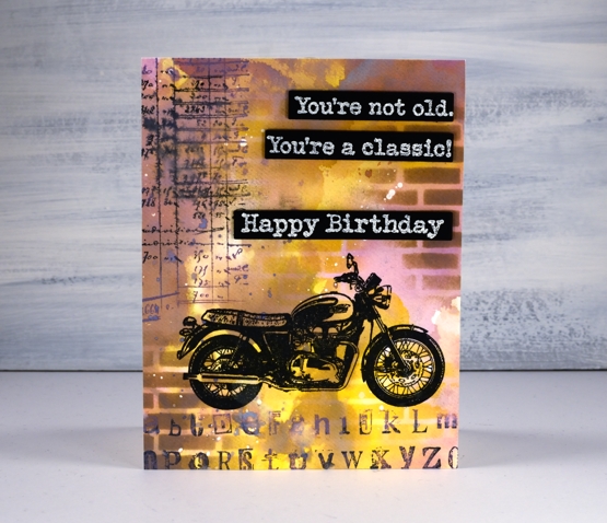 Posted: April 13, 2020 Filed under: alphabet medley, brick wall, classic cars vol 1, classic motorcycles, Darkroom Door, number medley | Tags: Darkroom Door stamps, distress oxide inks 13 CommentsRecently I posted a classic car card and both my brother and father responded that it was time for a classic motorcycle card. It is my dad’s birthday tomorrow so here is a motorcycle themed birthday card. Unfortunately it won’t arrive in his mail box anytime soon but we will chat via the interwebs. Happy Birthday, Dad!