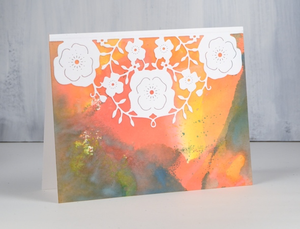 This one I decorated with the ‘floral half’ die cut edger. Both decorative dies cut all the intricate detail on one side and leave the opposite edge uncut