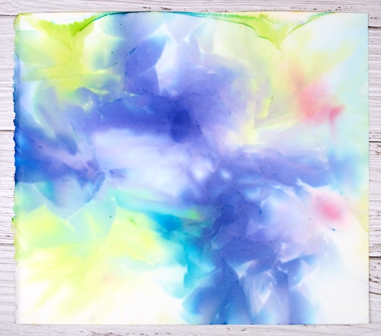 The red shape on the left hand side looked a bit like a flower so again I used a watercolour pencil to add a bit more colour and followed the lines left by the cling wrap.