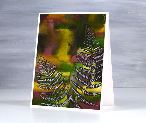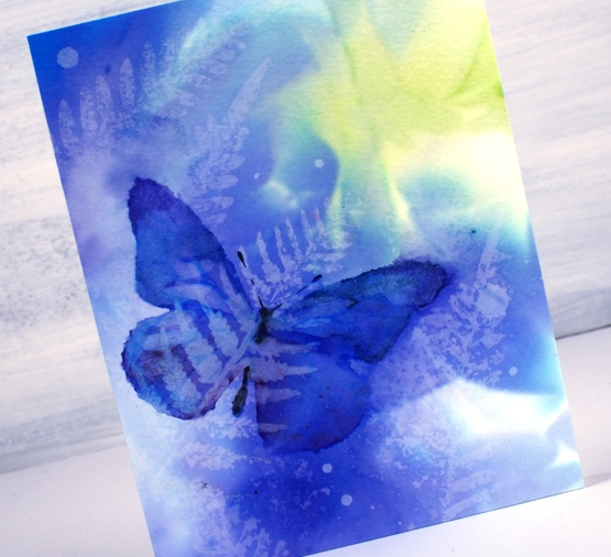 Once the butterfly was dry I did some water stamping using a fern stamp from the DD ‘leaves ‘ set.
