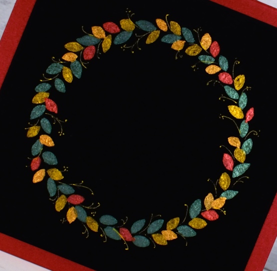 I remembered after watching Kristina Werner’s final holiday card series video that I hadn’t done anything Christmassy with my black watercolour paper and pearlescent paints. Also it’s been a while since I hand painted anything.