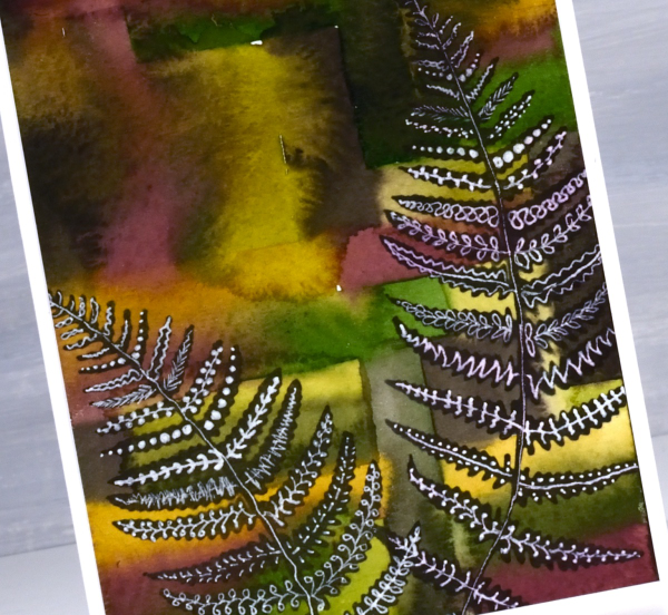 Once the black ink was dry I doodled different patterns on the fronds with white gel pens. This post includes affiliate links from Foiled Fox. If you buy through these links I receive a small commission at no extra cost to you.