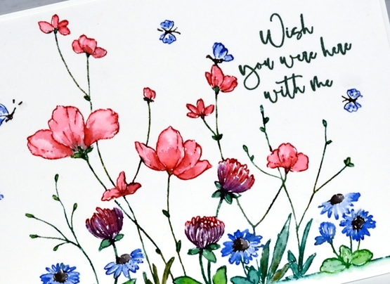 I chose to keep the panel simple on a white background but you could add a pale wash before starting or do some second generation stamping for background flowers. Maybe I’ll try that next.