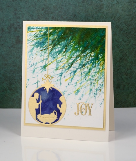 Ink: Encore gold ink(Tsukineko) evergreen bough, pine needles, crushed olive, forest moss distress stains ( Ranger)