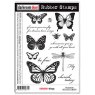 Posted: March 23, 2018 | Author: Heather | Filed under: Wildflowers Vol 1, Wings | Tags: Darkroom Door stamps, liquid metals, Ranger Distress inks | 11 CommentsThis is one of those cards that just evolved. I’ve had the butterfly stamps at hand while teaching a class with them. I did not have a definite plan; in fact, you may be surprised to hear it started with three butterflies stamped in rusty hinge distress ink. The panel sat around for a while then I decided to paint turquoise brusho and metallic sky liquid metal inside each of the brown butterfly outlines. I didn’t love that so I spritzed interference blue pearl-ex spray over all three butterflies to make the colour bleed into the surrounding area. Still not right, so I employed a technique one of my friends calls ‘drowning’ and spritzed the panel thoroughly. The result was a sparkly blue panel with muted butterflies now looking like background images.