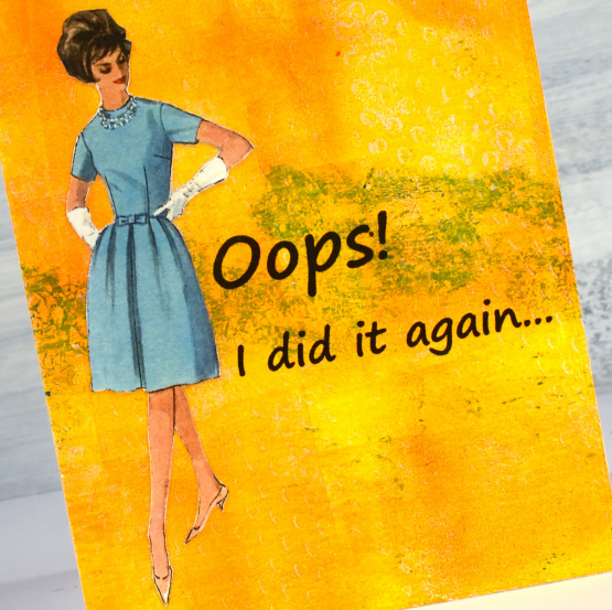 My family and friends know I have issues with remembering birthdays in a timely manner. I combined a vintage sewing pattern image with a partial gel print to send an apologetic belated birthday greeting.