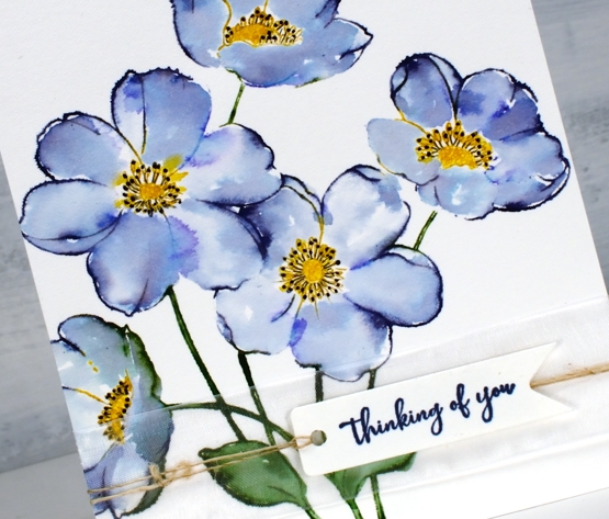 Finishing touches include defining the centres with the bullet tip of the distress marker and adding white dots with a gel pen. The sentiment is from the PB set ‘so thankful’. I have a few more in this little series of watercolours with PB’s large outline floral stamps so I’ll see you back here soon.