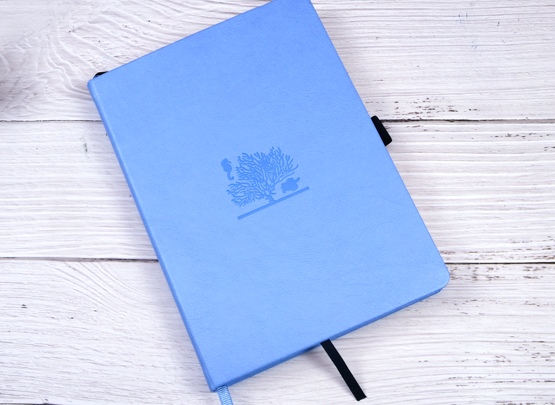 The first journal was a Fabriano dot journal which was a great size and price; it sat flat and had pages you could easily remove (a plus and a minus). My new dot journal is a little more upmarket; it is a Dingbats notebook from the Earth collection with a hard cover, sewn binding, slightly heavier weight dotted paper, numbered pages and a few designated key and index pages at the beginning. The fact that is is my favourite colour with an embossed image symbolising the Great Barrier Reef on the front is just a bonus. It has two ribbon bookmarks and a pen holder on the side.