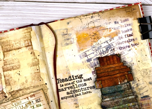 Posted: April 22, 2022 Filed under: Art Journal, bookshelf, bookworm, Darkroom Door, library books, Mixed Media | Tags: Art Journal, Darkroom Door stamps, Mixed Media, Ranger archival inks 9 Comments