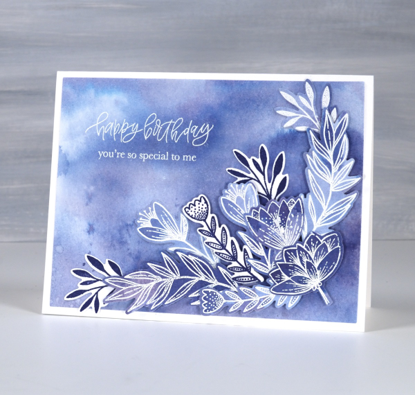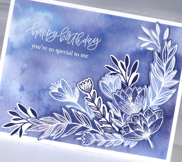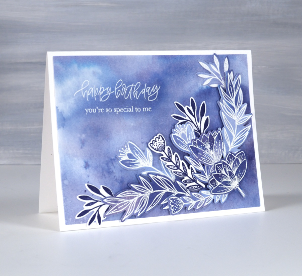 I’ve teamed up with the Foiled Fox to bring you this post and it is wonderful to be collaborating with them again. The stamps featured on today’s cards are from AALL & Create; the set is called ‘Cornflower‘ and includes two flower stamps and two sentiments.