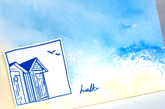 The images I have added over the seaside backgrounds are stamped in paradise versafine clair ink onto hot pressed watercolour paper.