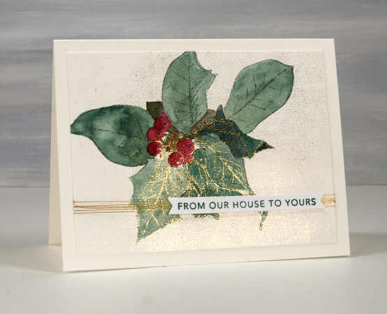 I’m not sure that holly comes in the blue green colour I chose for the card above but I like a bluey green so I keep choosing it on my projects. The green shown below might be more realistic.
