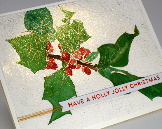 I have also painted these holly images without foiling but I think this post is long enough so I will share those cards another day. I’ve noticed lately that when my posts are quite long an ad appears before the end of the post. Sadly I have no control over that. If I don’t want ads I have to pay extra to not have them. Just think of my posts like a magazine page, ads do pop up here and there.